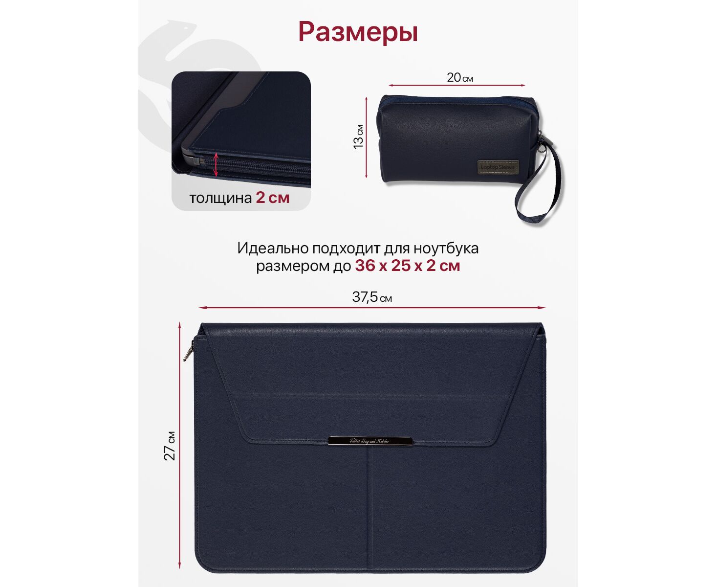 Чехол для ноутбука для MacBook Pro, Air, и планшетов Samsung, Xiaomi, KENSHI, Tecno, Teclast, Lenovo (диагональ 15-15.4") с регулируемой подставкой, в комплекте с сумкой для мыши и зарядки, с ковриком для мыши, темно-синий (сумка портфель для макбука)