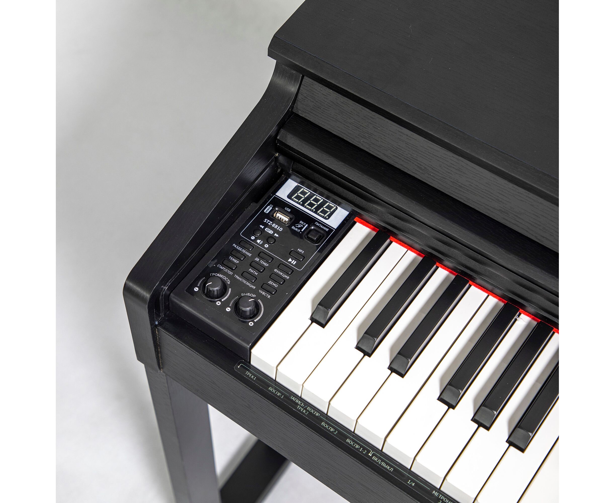 Разъемы: AUDIO IN / OUT разъемы, MIDI IN / OUT разъемы, USB разъем для подключения к компьютеру для использования музыкального ПО, 2 разъема Jack 6.3 мм для подключения наушников, разъем для подключения педалей.