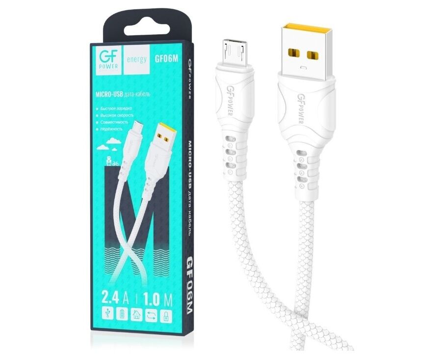 Кабель GFPower 06M USB (m)-microUSB (m) 1.0м 2.4A ПВХ белый (1/200/800)