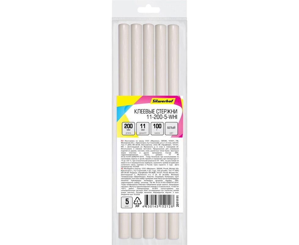Клеевые стержни для клеевого пистолета Silwerhof 11-200-5-WHI дл.200мм D11мм белый упак 5шт