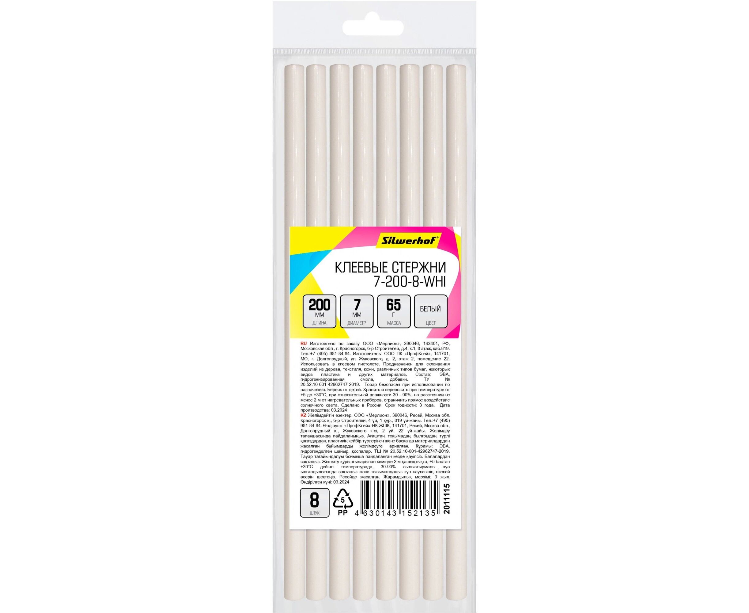 Клеевые стержни для клеевого пистолета Silwerhof 7-200-8-WHI