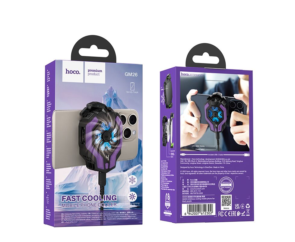 Кулер игровой (охлаждение) для смартфонов HOCO GM26 Ambitious cooling mobile phone fan (черный/фиолетовый)