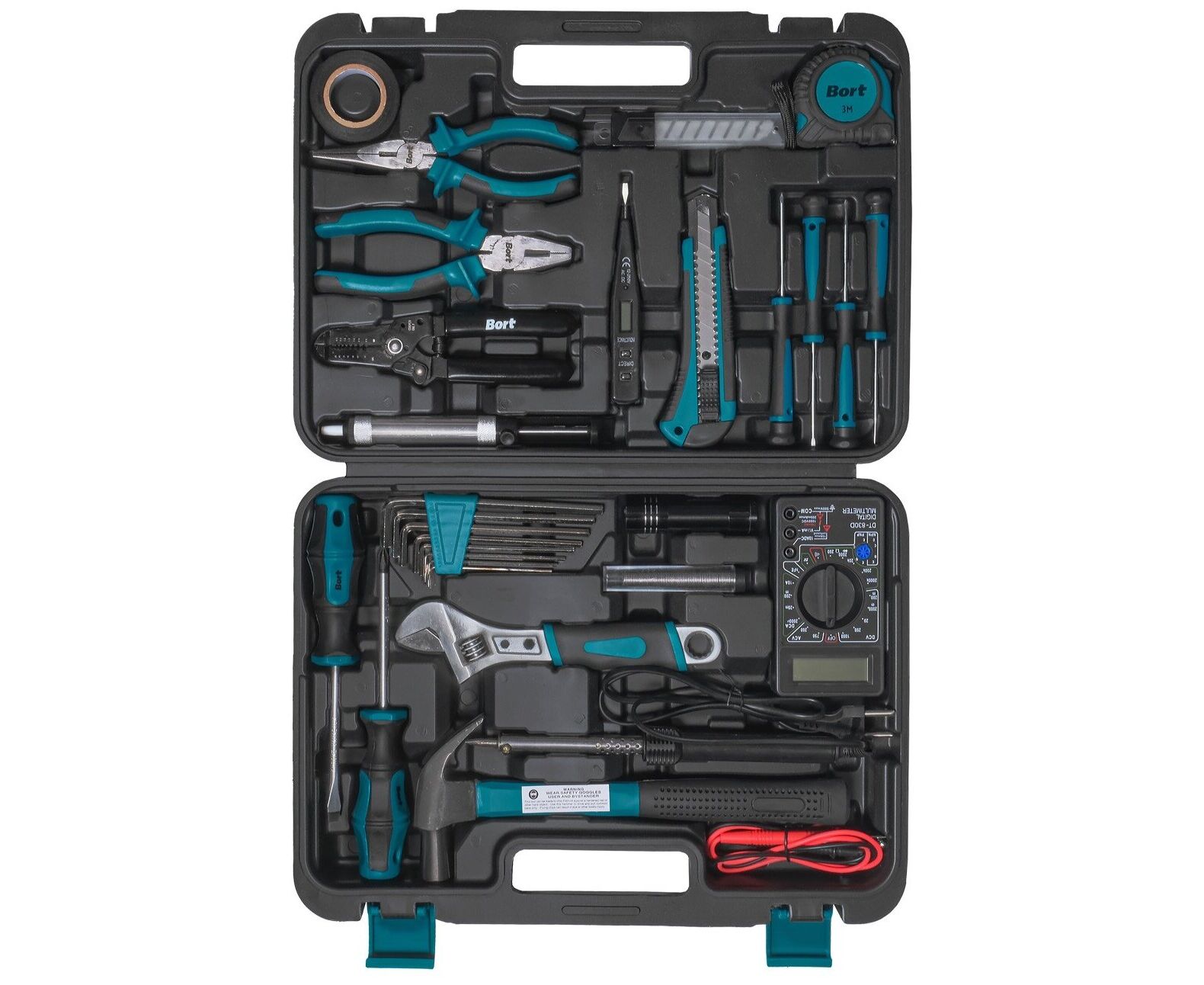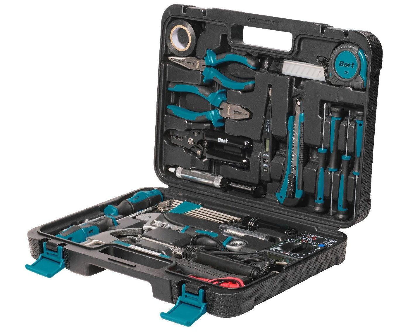 молоток, отвёртки, плоскогубцы, длинногубцы, отвёртки для точных работ, ключ разводной, ключи имбусовые (шестигранные), паяльник, клещи для обжима проводов