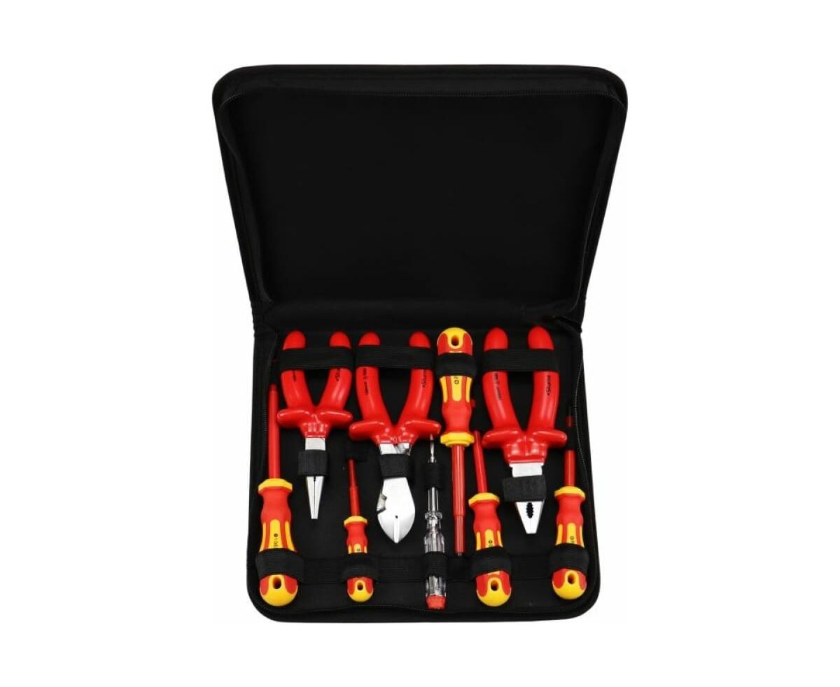 предназначен для электромонтажных работ под напряжением до 1000 В. Рабочая поверхность выполнена из высококачественной стали и устойчива к повреждениям. Изолирующие рукоятки с антискользящим покрытием обеспечивают комфортное использование. Кейс служит для удобного хранения и транспортировки.