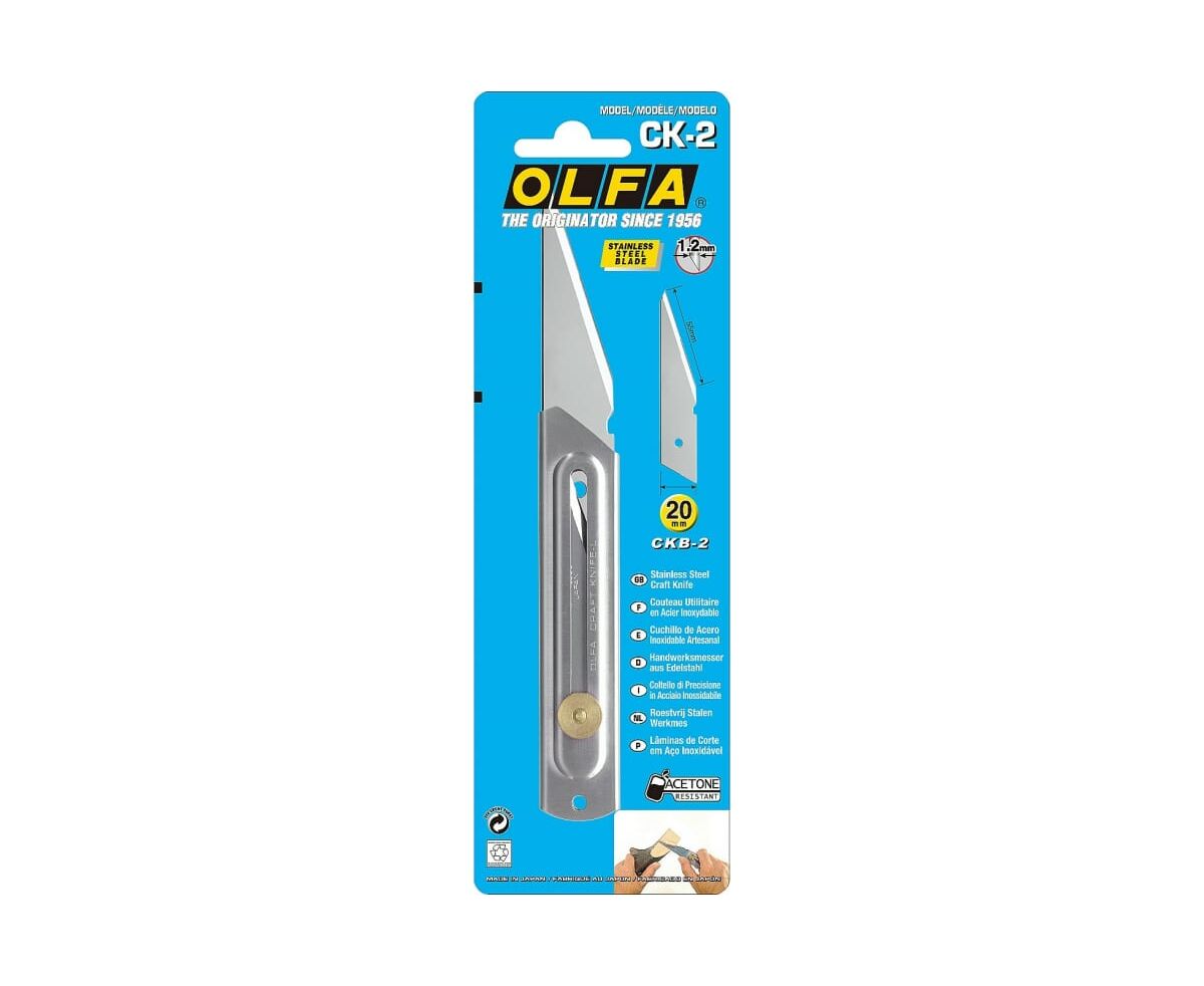 Сверхпрочный ремесленный нож OLFA 20 мм OL-CK-2 со специально разработанным лезвием для различных хобби, в том числе резьбы по дереву. Корпус и лезвие изготовлены из нержавеющей стали, что увеличивает прочность и срок службы инструмента, а также придает ножу устойчивость к коррозии.