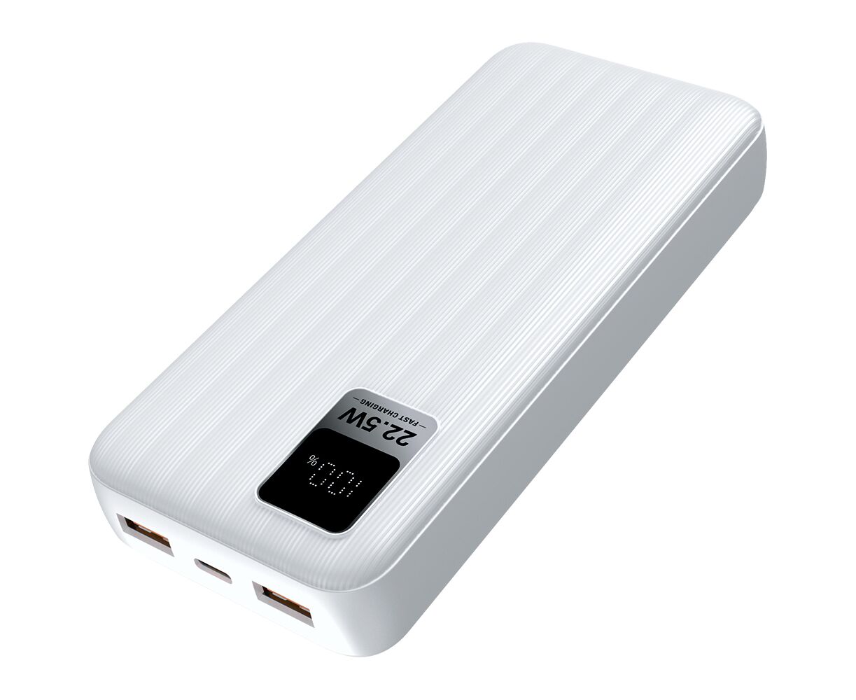 Пауэрбанк Perfeo WATERFALL 20000 mAh/LED дисплей/PD + QC 3.0/Type-C/2 USB/Выход: 5A, max 22.5W(цвет- белый)