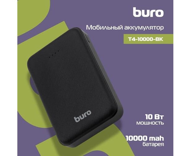 Power Bank Buro T4-10000, 10000мAч черный