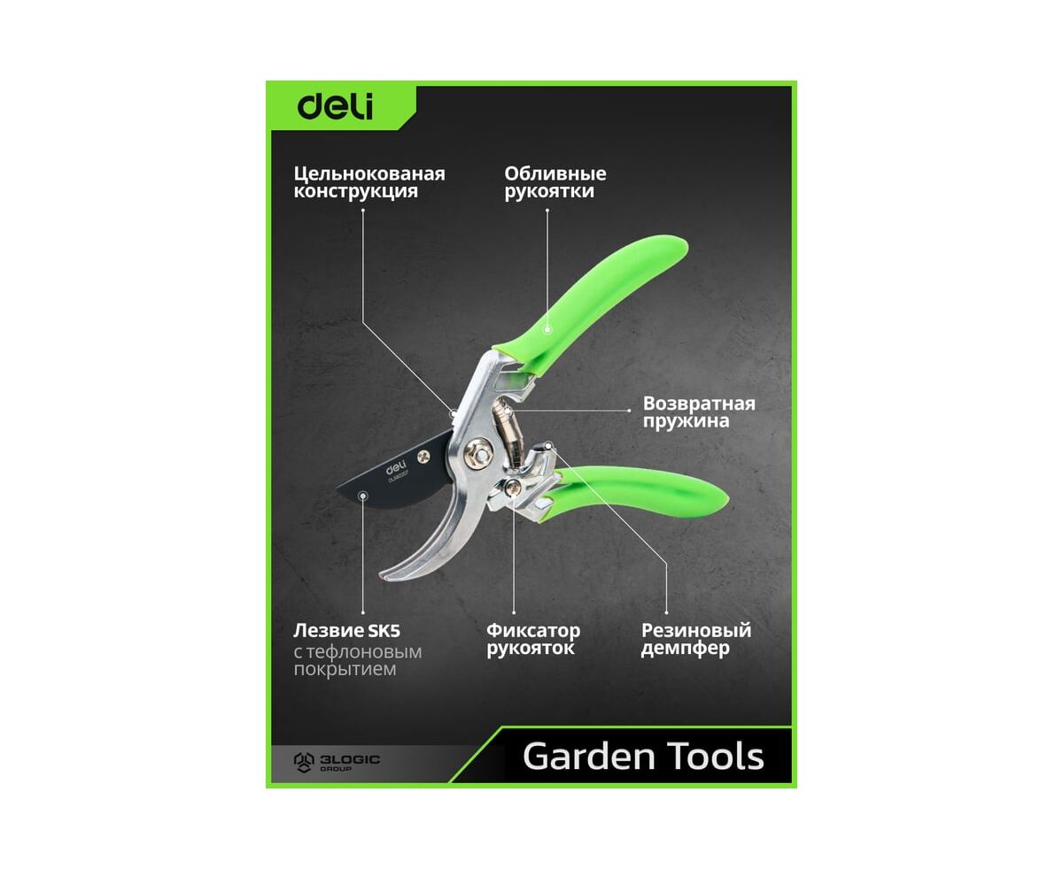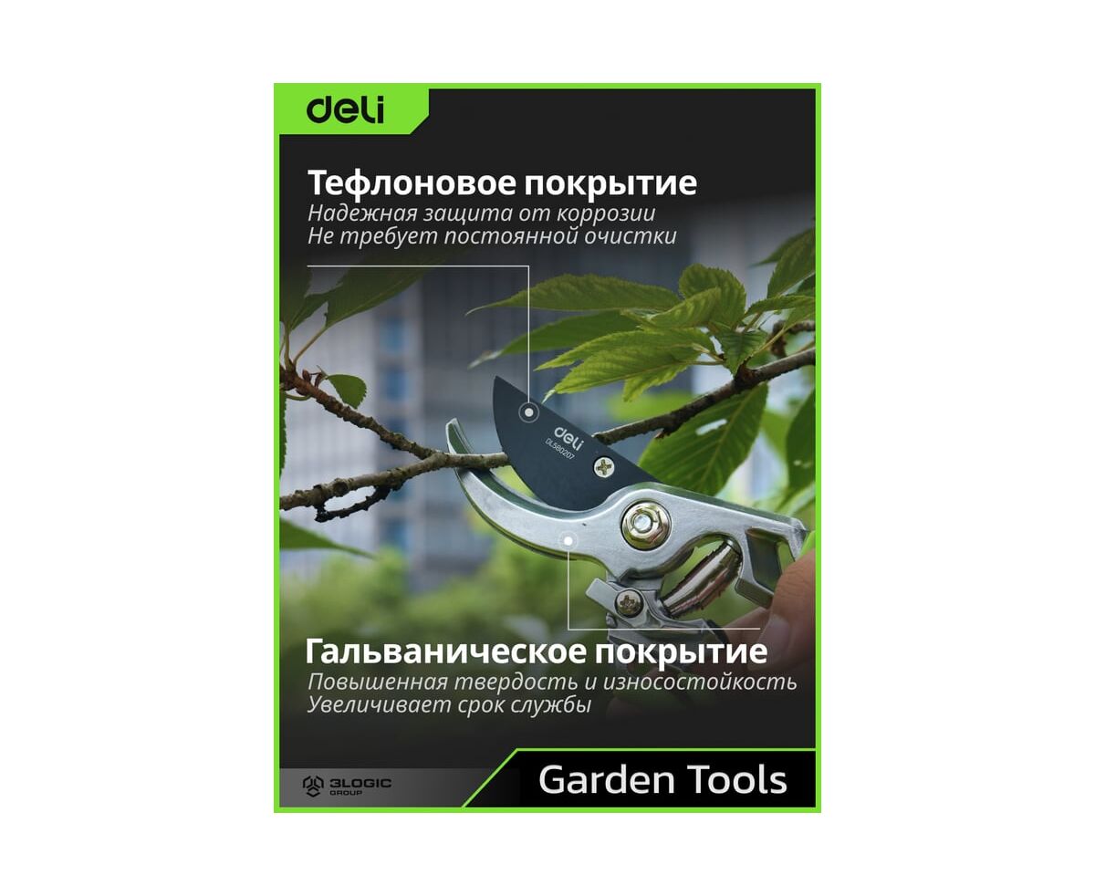 Секатор садовый DELI 215 мм DL580207 представляет собой надежный инструмент для ухода за садом.