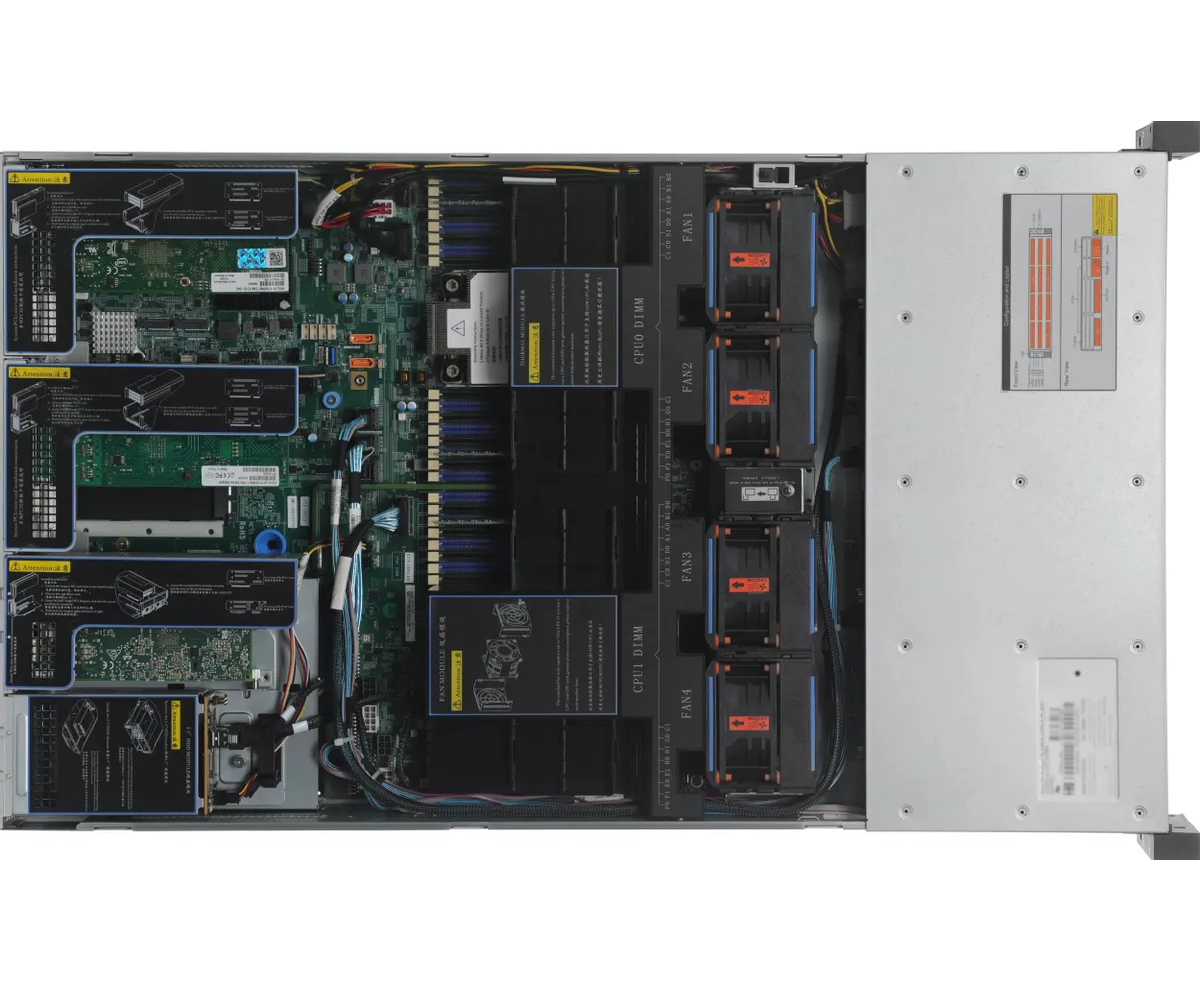 Корзина на 12 дисков SAS/SATA 2.5/3.5 с активным backplane. Установлен контроллер LSI 9361-8I SGL 12Gb/s RAID 0/1/10/5/6/50/60 8i-ports 1Gb с батареей. Тыловая корзина на 2 системных диска SATA 2.5. Рельсы в комплекте.
