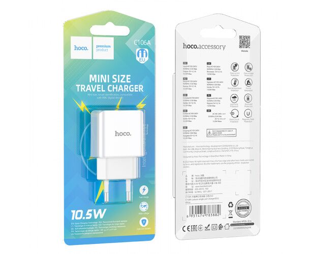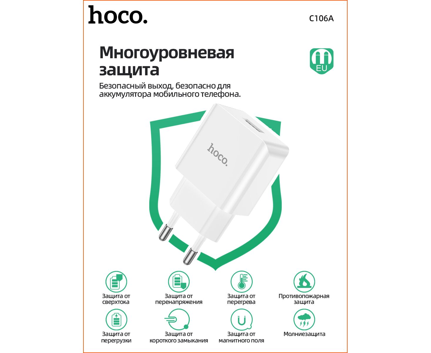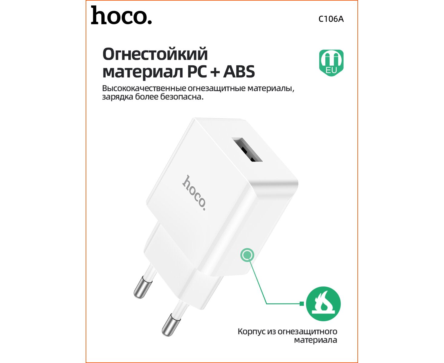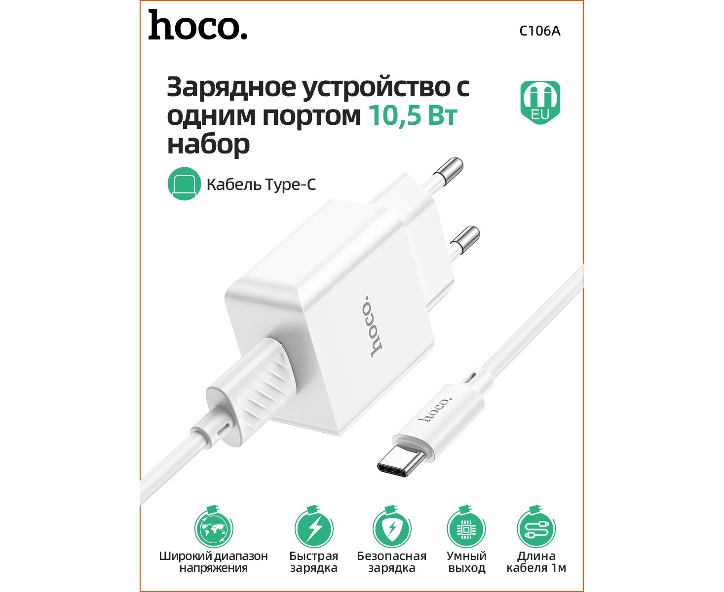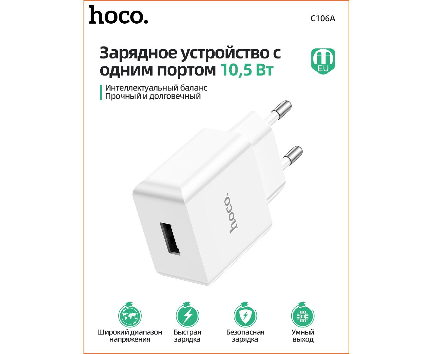 СЗУ HOCO C106A Leisure, 1USB + Type-C (EU) (белый)