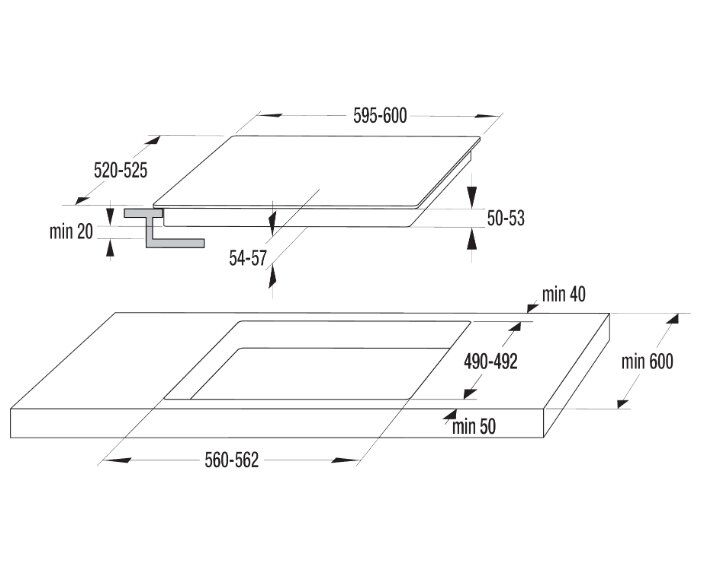 - Размеры для встраивания (ШхГ)
