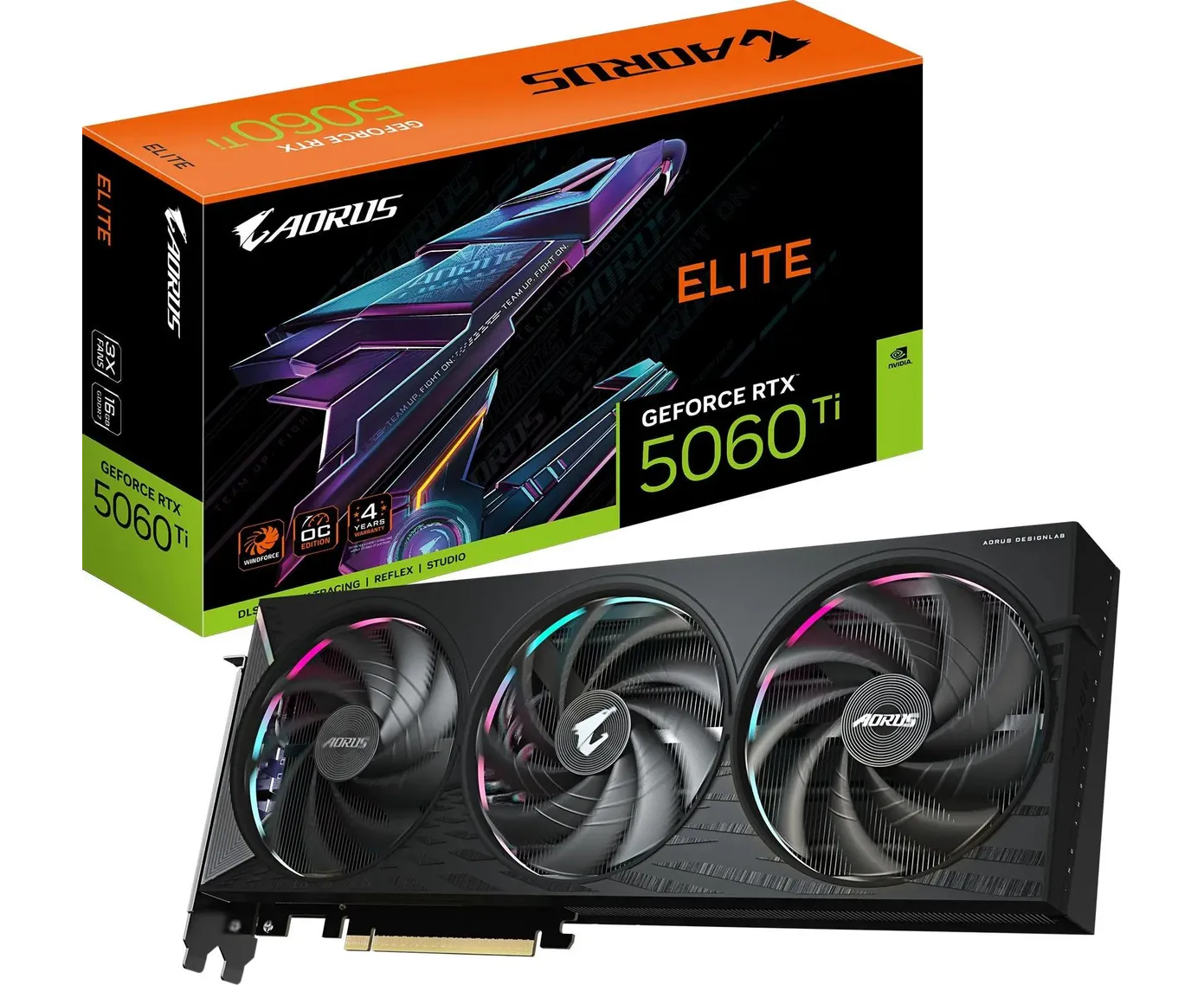 Видеокарта Gigabyte Nvidia GeForce RTX 5060TI Aorus Elite (GV-N506TAORUS E-16GD 1.0) 16ГБ, GDDR7, Ret