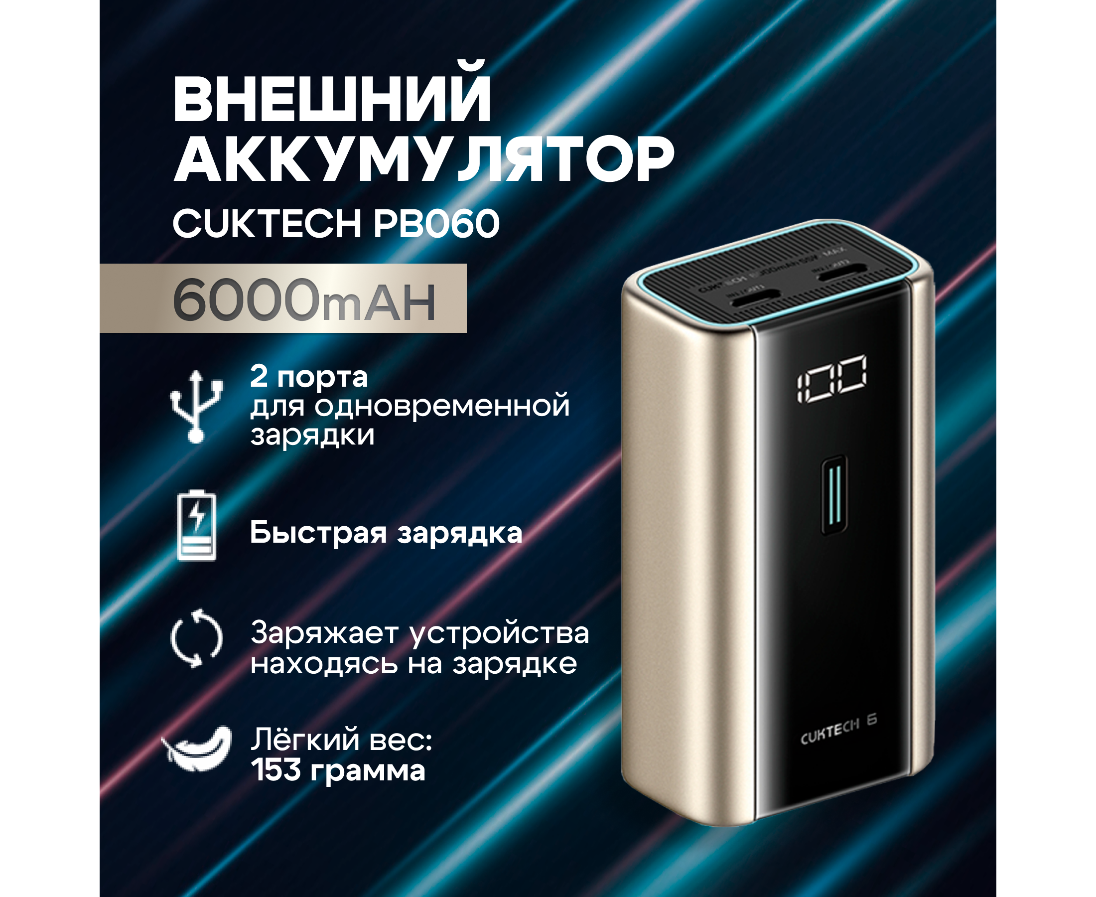 Внешний аккумулятор CUKTECH PB060 6000mAh 55W golden
